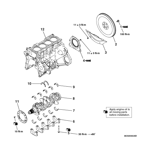 2.Apply engine oil to the crankshaft sensing ring screw.