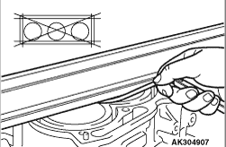 2.Using a straight edge or a thickness gauge, measure the flatness of the cylinder block top surface. Ensure that no gasket or other foreign matter is attached to the top face.