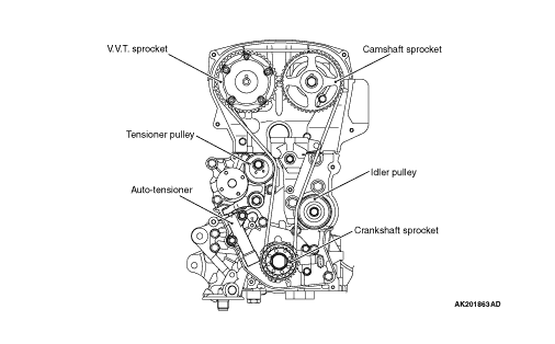 The variable valve timing control system consists of the parts shown in figures.