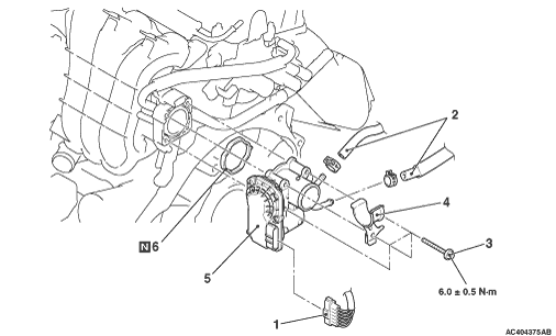 • When the throttle body assembly replacement is performed, idling speed may be unstable because the MPI engine learning is not completed. To make it stable, make the system learn the idling (Refer to GROUP 00, Precautions before Service - Learning Procedure for Idling in MPI Engine ).
