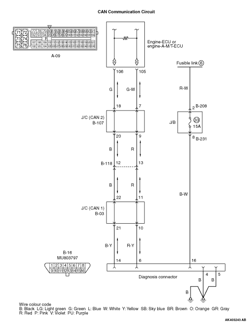 B-16 (terminal No. 16) diagnosis connector and battery.