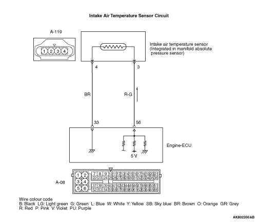 3) manifold absolute pressure sensor connector and A-08 (terminal No. 56) engine-ECU connector.