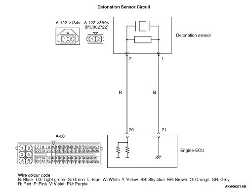 STEP 1. Connector check: A-122 detonation sensor connector