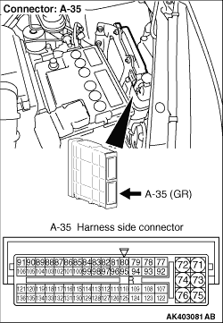 - Disconnect connector, and measure at harness side.