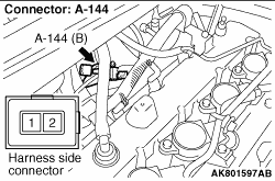 A-144 (terminal No. 1) fuel pressure control solenoid valve connector and B-206 (terminal No.