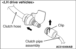 <<A>> CLUTCH HOSE <LH DRIVE VEHICLES>, CLUTCH PIPE ASSEMBLY <RH DRIVE VEHICLES> AND CLUTCH MASTER CYLINDER DISCONNECTION