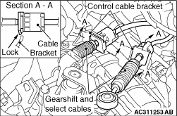 >>A<< GEARSHIFT CABLE/SELECT CABLE (TRANSMISSION SIDE) CONNECTION