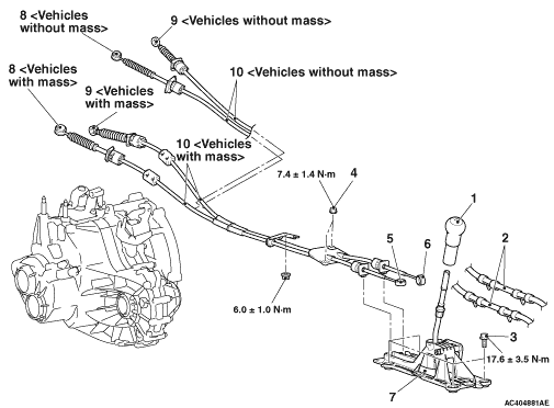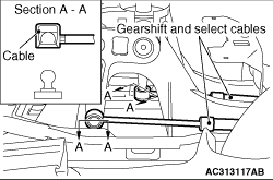 <<A>> GEARSHIFT CABLE/SELECT CABLE (GEARSHIFT LEVER SIDE) DISCONNECTION