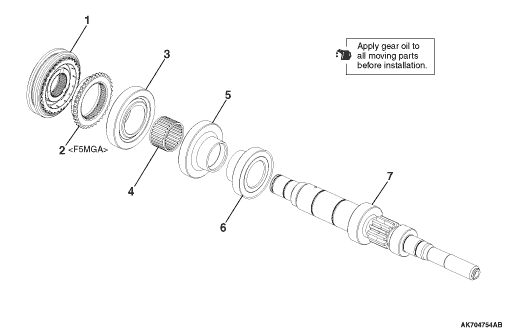 Using the special tools, support the speed gear 5th and remove the synchronizer unit 5th,