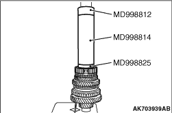 Using the special tool, (MD998917) support the speed gear 1st and remove the synchronizer unit 1/2 and speed gear 1st.