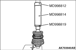 Using the special tool, (MD998917) support the speed gear 3rd and remove the needle bearing inner race, synchronizer unit 3/4, dog body 3rd and speed gear 3rd.
