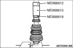 Using the special tool, (MB992257), support the fixed gear 5th and remove the fixed gear 5th. <F5MGA>