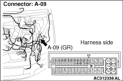 STEP 6. Check the wiring harness between automated manual transmission control relay connector B-218 terminal No.4 and engine-A-M/T-ECU connector A-09 terminal No.71, 73, automated manual transmission control relay connector B-218 terminal No.2 and engine-A-M/T-ECU connector A-09 terminal No.109.