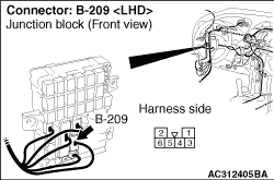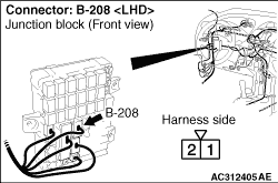 STEP 3. Connectors check: B-208 J/B connector, B-218 automated manual transmission control relay connector.