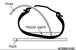 with one end connected to the empty bottle of the repair agent and the other end submerged in