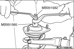 warning Do not use an impact wrench to remove the self-locking nut. Vibration of the impact wrench will cause special tools (MB991237 and MB991238) to slip and cause personal injury.