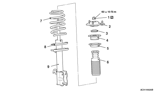• Do not use an impact wrench to tighten the bolt of special tool spring compressor body (MB991237), otherwise the special tool will break.