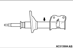 The gas must be discharged from the strut assembly before discarding it. Place the strut assembly horizontally with its piston rod extended. Then drill a hole of approximately 3 mm in diameter at the location shown in the illustration and discharge the gas.