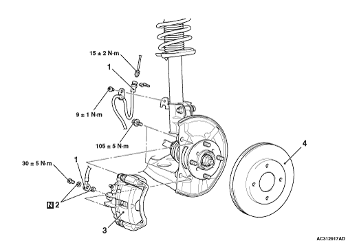 Brake disc run-out check and correction (only at installation) (Refer to ).