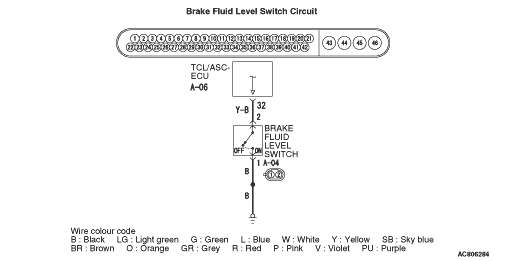 TCL/ASC-ECU monitors ON/OFF of the brake fluid level switch, and if