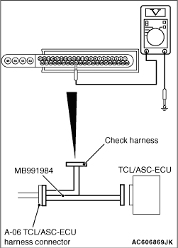 (MB991984) to the TCL/ASC-ECU-side connector and harness-side connector, and then measure