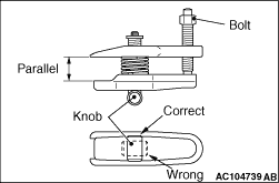 When adjusting the special tool wedge horizontally, move the knob to the position shown