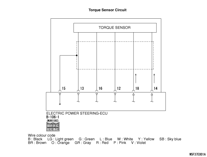 Disconnect electric power steering-ECU connector B-106-1, and measure the resistances