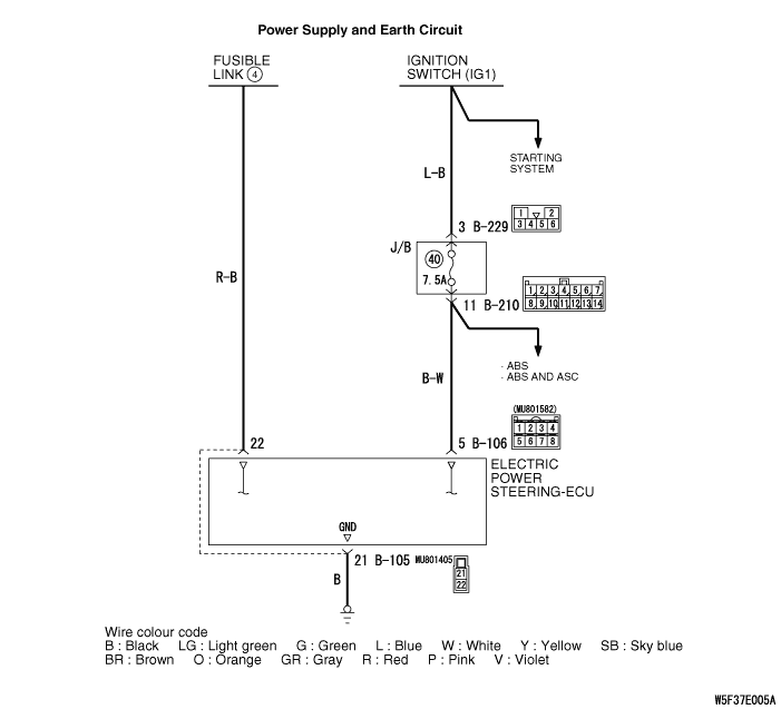 Check the wiring harness wires and connectors between body earth and electric power steering-ECU connector B-105 and repair if necessary.