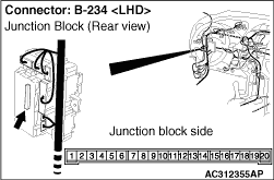 Refer to GROUP 54B, Inspection Procedure A-1 "Check the battery power supply circuit