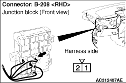 Prior to the wiring harness inspection, check junction block connector B-208, and repair