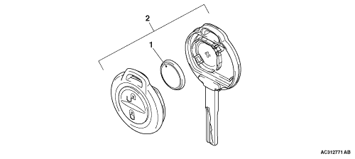Use the special tool ornament remover (MB990784) to remove the transmitter cover, and then remove the battery from the key side of the transmitter assembly.