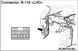 Prior to the wiring harness inspection, check intermediate connectors B-104 and B-119, and repair if necessary.