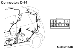 Prior to the wiring harness inspection, check intermediate connectors B-124 and C-14, and repair if necessary.