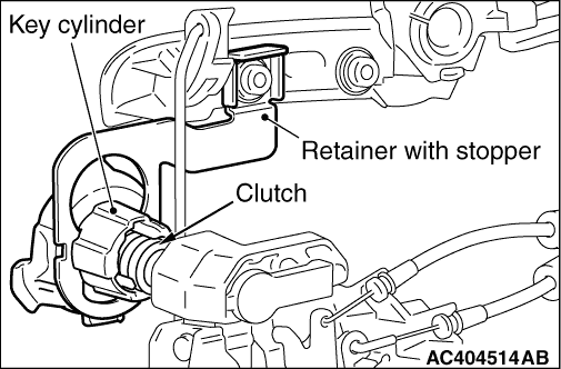 - The retainer with stopper has been adopted to the door key cylinder to prevent improper removal of the key cylinder from outside the vehicle.