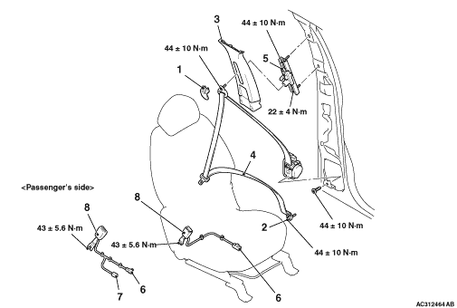 Outer seat belt (Refer to GROUP 52B, Seat Belts with Pre-tensioner ).