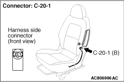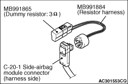 (5)Connect special tool resistor harness (MB991884) to the C-20-1 side-airbag module connector (harness side).