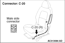 (2)Disconnect the side-airbag module connector C-20.