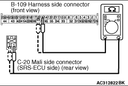 - SRS-ECU connector B-109 (terminal No.16) and the male side connector C-20 (SRS-ECU side) (terminal No.2)