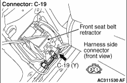 STEP 4. Check the harness wires for open circuit and short circuit between SRS-ECU connector B-109 (terminal No.40 and 41) and side impact sensor (LH) connector C-19 (terminal No.2 and 1).