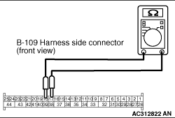 STEP 5. Resistance measurement at the SRS-ECU connector B-109.