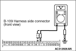 (7)Voltage measurement between B-109 harness side connector terminals 9, 10 and body earth.