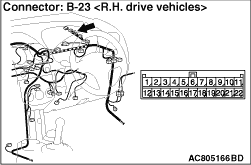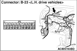 Prior to the wiring harness inspection, check joint connector (1) B-23, and repair if