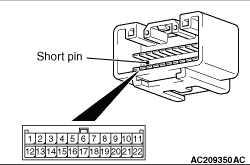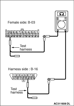 (1)Disconnect the connector, and measure at its male-side intermediate connector (at the instrument panel wiring harness side). (2)Ignition switch: OFF (LOCK) (3)