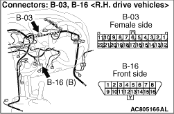(5)Continuity between B-03 joint connector (CAN1) terminal No.21 and B-16 diagnosis connector terminal No.14 OK: 2 Ω or less