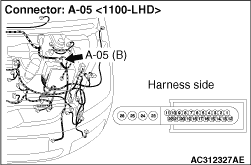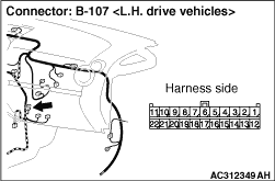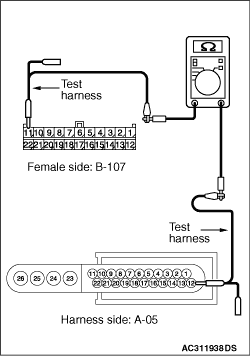 (4)Continuity between B-107 joint connector (CAN2) terminal No.11 and A-05 ABS-ECU connector terminal No.12 OK: 2 ohms or less