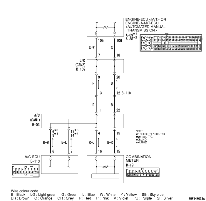 (5)Continuity between B-03 joint connector (CAN1) terminal No.17 and B-113 A/C-ECU connector terminal No.7 <L.H. drive vehicles> OK: 2 ohms or less