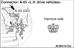 STEP 3. Connector check: A-03 windshield wiper motor connector