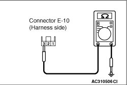 STEP 7. Check the wiring harness between E-10 rear wiper motor connector terminal No.3 and body earth.