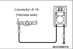 STEP 4. Check the wiring harness from B-18 fog lamp switch connector terminal No.6 to body earth.