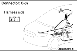 STEP 2. Connector check: C-32 front door switch (RH) connector